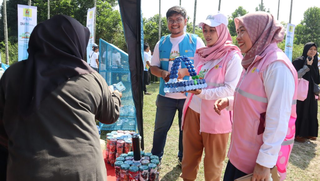 Pekanbaru, 12 Juni 2025 – Sebagai bagian dari peringatan Hari Lingkungan Hidup Sedunia dan wujud nyata dari komitmen terhadap pelestarian lingkungan, Srikandi PT PLN Mandau Cipta Tenaga Nusantara (PLN MCTN) memborong hasil karya para pengrajin daur ulang dari Bank Sampah RW 05 Kampung Iklim Agrowisata, Kecamatan Rumbai Barat seperti wadah minuman yang terbuat dari tutup botol bekas, scrunchie, hingga tas yang didaur ulang dari sampah plastik limbah rumah tangga pada Kamis (12/06) lalu dalam sebuah bazar bertempat di Lapangan Sri Palas, Kecamatan Rumbai Barat.